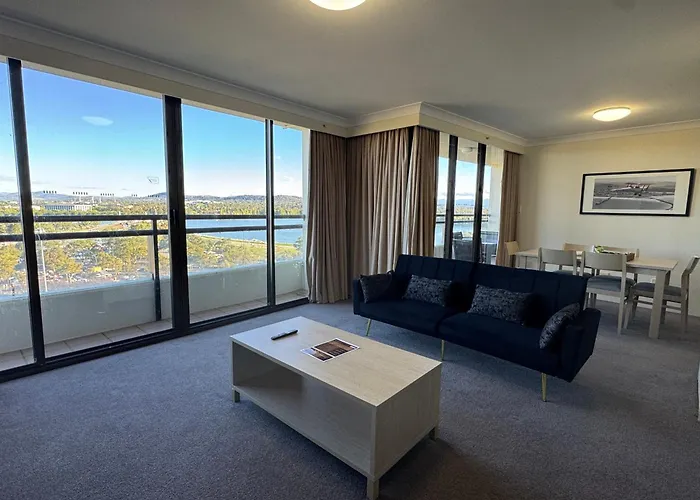 Lakefront Panorama - Sky Collection Suite Canberra, som ligger ungefär 25 minuter till fots från Australian War Memorial, lockar gästerna med bastu. Nära den här lägenheten hittar du Canberra Centre köpcenter.